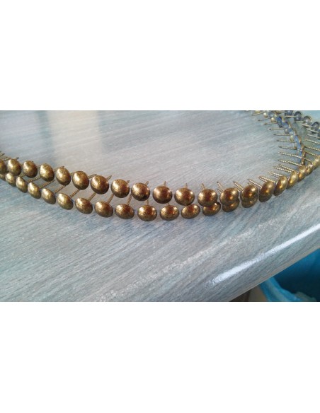 Reference 1503. Check out these flat head tacks perfect for fixing fabric and materials to furniture frames. They have a shank length of 16mm, while their diameter is 20mm. Our nailhead strips are available with both smooth and ringed shanks. Discover online the different finishes available such as old gold, bronze renaissance, old coppered, nickel...