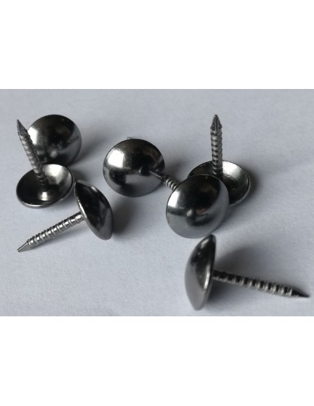 Reference 1503. Check out these flat head tacks perfect for fixing fabric and materials to furniture frames. They have a shank length of 16mm, while their diameter is 20mm. Our nailhead strips are available with both smooth and ringed shanks. Discover online the different finishes available such as old gold, bronze renaissance, old coppered, nickel...