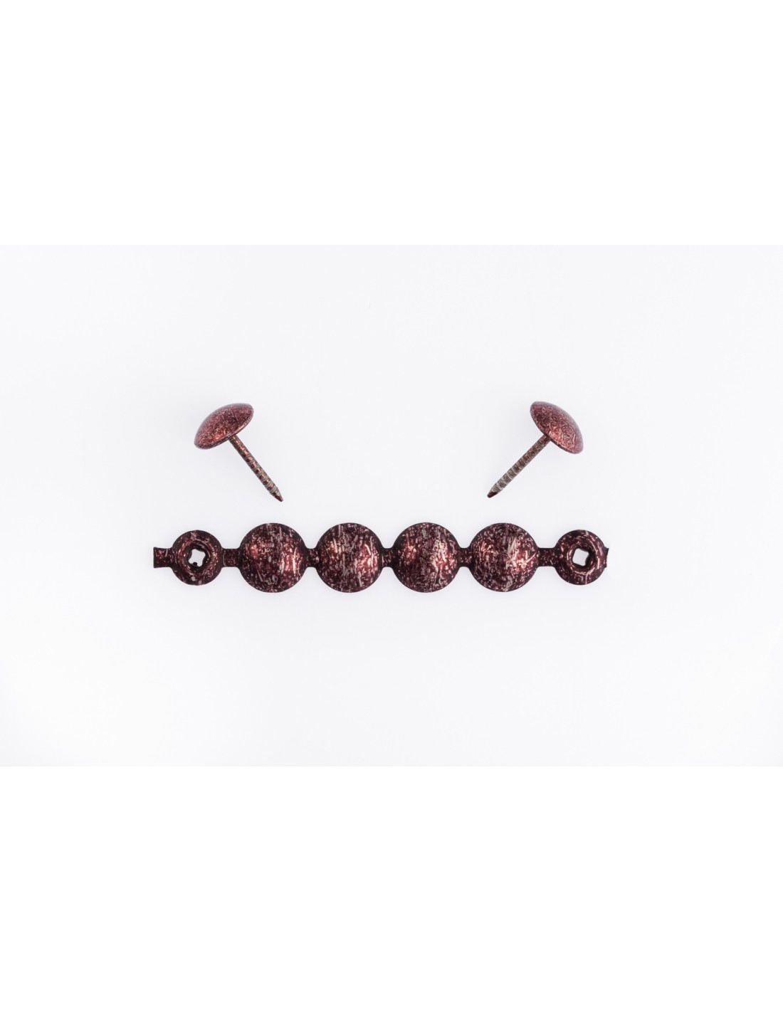 Reference 130 1/3. Nailhead trims with a diameter of 11mm. The length of the nailhead trim is 1mt. There is a hole every 4 false head. Boxes of 250mt and 6000 upholstery nails to match (to order separately - art. 1301/3). The head of these upholstery nails is embossed