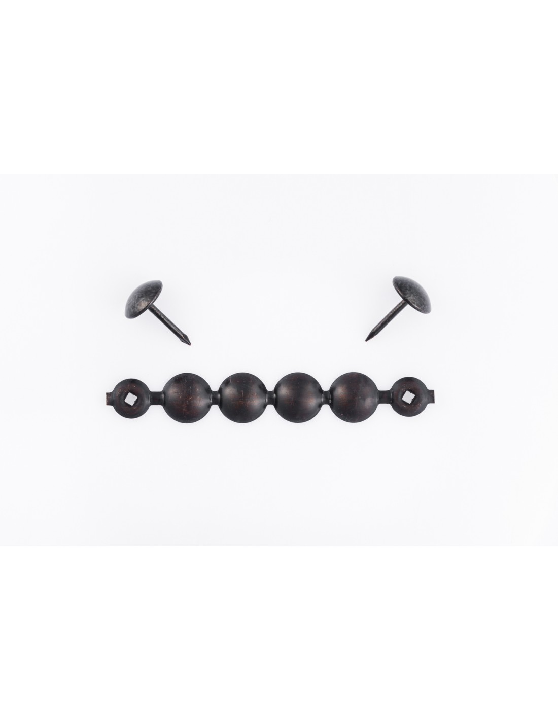 Reference 130 1/3. Nailhead trims with a diameter of 11mm. The length of the nailhead trim is 1mt. There is a hole every 4 false head. Boxes of 250mt and 6000 upholstery nails to match (to order separately - art. 1301/3). The head of these upholstery nails is embossed