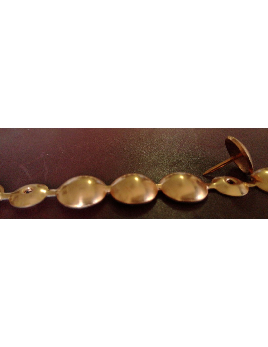 Reference 200 1/3. Nailhead upholstery trim with a diameter of 20mm. The length of the nailhead trim is 1mt. There is a hole every 3 false head. Boxes of 100mt and 1500 upholstery nails to match (to order separately - art. 1503). The available finishes are: old gold, bronze renaissance, nickel plated, antique black oxidized, coppered, brassed.