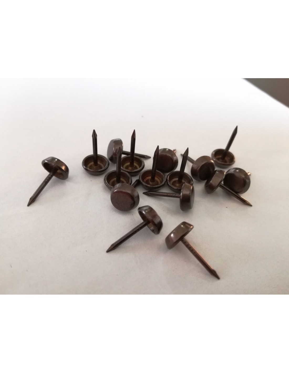 Borchie sciolte per calzature bulletta 6.5mm 20 1/2 Bulletta 6,5mm rif. 20 1/2 infilate su striscia di plastica per fissaggio con pistola pneumatica. Confezioni da 24.000 pz Vedi